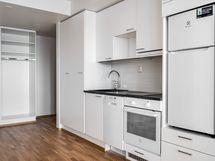 Kiva yksiö, jossa on tilatehokkaassa muodossa kaikki sujuvaan asumiseen tarvittava. Eteinen on selkeä, kylpyhuoneeseen mahtuu pesutorni ja sängylle jää rauhallinen paikka alkoviin. Parvekkeelle on ihana viettää kesäistä aamiaishetkeä aamuauringon helliessä.