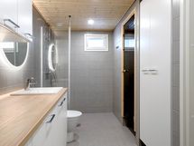 Eteisessä on vaatehuone, jonne lastenvaunut tai harrastusvälineet on helppo sujauttaa kotiin tultaessa ja napata taas lähtiessään mukaan. Kodinhoitohuone ja runsaat säilytystilat tekevät arjen hoitamisesta vaivatonta.