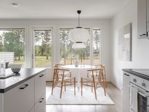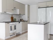 - Tyylikäs avokeittiö saarekkeella ja runsaalla kaappitilalla