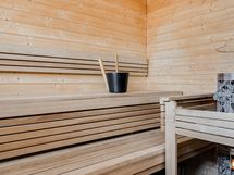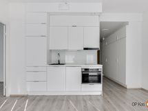 - Jenkkikaappi integroitu, erillisuuni rosteri, liesitaso keraaminen, liesituuletin, astianpesukone, kaapistot sileäpintaiset mdf-ovet, kiinteät valaisimet. Komposiittiallas