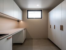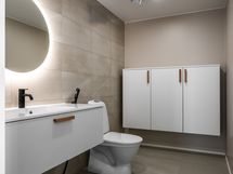 Iso kodinhoitohuone ja jopa kolmen makuuhuoneen yhteydestä löytyvät vaatehuoneet tekevät arjen hoitamisesta helppoa.