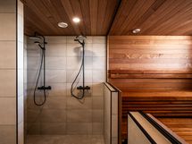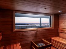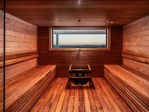 Spa-henkinen kylpyosasto sadesuihkuilla ja laadukkailla Pukkilan laatoilla, upea sauna lasiseinällä, pilarikiukaalla ja ikkunalla merelle sekä saunan vierestä löytyvä viihtyisä lounge-tila luovat kotiin Premium-tason tunnelmaa.