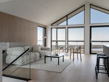 Tästä kodista avautuu merelle esteetön panoraamamaisema, jota pääset ihailemaan toisen kerroksen isolta lasitetulta parvekkeelta. Panoraamamaisemasta on mahdollista nauttia myös kodin oleskelutiloista laajojen ikkunapintojen ansiosta. Muuttuvaa merta ja taivaanrantaa pääsee ihailemaan omalta kotisohvalta.