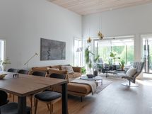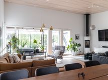 - Olohuoneessa ja keittiössä rimakatto
