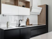 - Liesi: induktio, erillisuuni. Työtasot: kivi. Kylmäsäilytys: jääkaappi, pakastekaappi. Varustus: liesituuletin, mikroaaltouuni, astianpesukone, kiinteät valaisimet. Keittiön kivitasot Blanco Zeu, kodinkoneet Electrolux, jääkaappi ja pakastinkaappi Samsung, kiintokalusteet Topi-keittiöt.