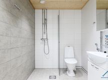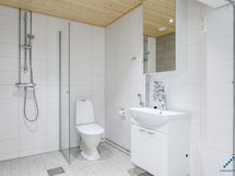 Varusteet: Suihkuseinä, Pesukoneliitäntä, Lattialämmitys, WC, Suihku, Peilikaappi, Kiinteät valaisimet