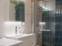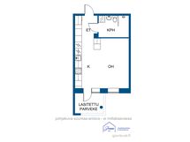 Varustus: suihkuseinä, pesukoneliitäntä, lattialämmitys, wc-istuin, suihku, peilikaappi.