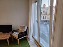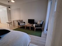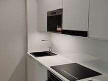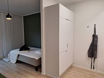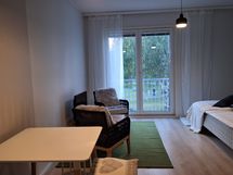 Apartment right in the city center. For a cultural person as a second home, for a student, a minimalist, for an Airbnb investment, as a rental apartment? A quiet, brand new and spacious studio at the end of the corridor on the second floor. French balcony, views directly to the park. Excellent location in the middle of the city, next to an international school. A functional floor plan, a lot of storage space (a spacious walk-in closet and cage storage), a well-equipped kitchen with integrated appliances, and a good-sized bathroom with a washing machine. The front part of the dressing room is suitable as a work space, so you can have peace of mind by closing the door, even if there are others in the space. The apartment has light surfaces (except two painted effect walls) and durable laminate floors. In the kitchen, a stone composite sink, a laminate surface, white glass in the background, an induction stove, an integrated dishwasher and a fridge-freezer, as well as an oven and a microwave. You can reserve your own sauna hour in the sauna facility. The apartment is in similar condition as new. No holes on walls or similar repair needs. The apartment is free from the current tenant in August 2025.