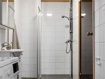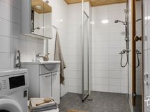 Varustus: pesukoneliitäntä, wc-istuin, suihku.