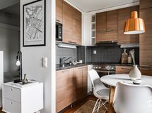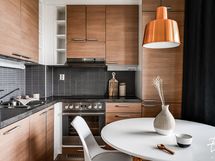 Erillinen keittiö tuo kotiin arjen toimivuutta. Keittiössä on tilaansa nähden reilusti kaappi- ja laskutilaa. Laadukkaat materiaalit, integroidut kodinkoneet ja kaunis värimaailma luovat sisustamiselle seesteisen tunnelman.