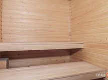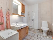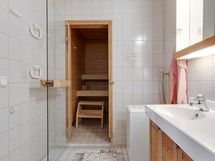- Sauna, sähkökiuas, kylpyhuone, suihku, peilit, allaskaappi, pesukoneliitäntä kylpyhuoneessa, kiinteät valaisimet. Sauna on rakennettu huoneistoon 1989, lopputarkastus on tehty 14.7.1989.