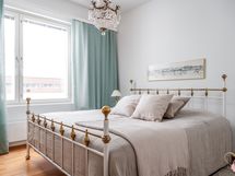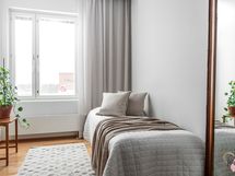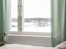 Tämän kodin makuuhuoneet on sijoiteltu fiksusti niin, että jokaiselle löytyy oma rauhallinen tilansa. Keittiön takana sijaitsee päämakuuhuone, josta näkymä avautuu myös Hartaanselälle. Lisäksi täällä on säilytystilaa seinän leveydeltä.