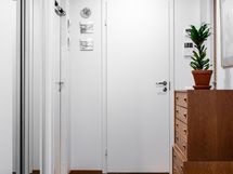 Astuttaessa sisään avara eteinen vastaanottaa asukkaan ja vieraat. Peililiukuovien taakse kätkeytyy runsaasti säilytystilaa, jolloin eteisen yleisilme pysyy siistinä ja selkeänä. Sisäänkäyntiä vastapäätä avautuu yksi kodin makuuhuoneista, joka palvelee loistavasti vieras- tai työhuoneena. Eteisen yhteydessä on lisäksi kätevästi erillinen wc.