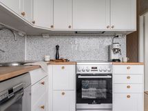- Liesi: induktio. Työtasot: laminaatti. Kylmäsäilytys: jääkaappi/pakastin. Varustus: liesituuletin, mikroaaltouuni, astianpesukone. Keittiö remontoitu toukokuussa 2022, Oulun Remontti Idea Oy Gigantin alihankintana. Keittiön laminaattilattia vahdettu keittiöremontin yhteydessä 2022.