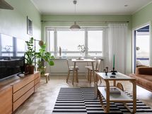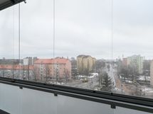 - Keittiöstä ja toisesta makuuhuoneesta näkymä länteen Tuiranpuistoon.