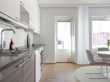 - Liesi: induktio. Työtasot: laminaatti. Kylmäsäilytys: jääkaappi, pakastin. Varustus: liesituuletin.