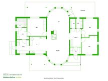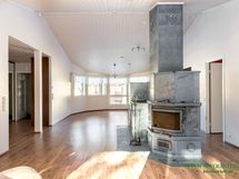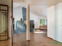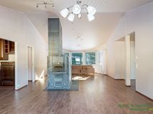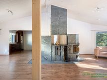 Talo on kaukolämmössä, ja vesikiertoinen lattialämmitys tuo mukavuutta jokaiseen huoneeseen. Ilmanvaihto on koneellinen lämmöntalteenotolla, mikä varmistaa raikkaan sisäilman ympäri vuoden. Keskeisellä paikalla on myös massiivinen takka, leivinuuni ja puulämmitteinen valurautahella, jotka tuovat lämpöä ja tunnelmaa. Päämateriaalina on kestävä puu, ja huopakate suojaa taloa säältä. Kodinhoitohuoneesta on oma kulku ulos, mikä helpottaa arkea.