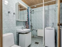 - Sauna, sähkökiuas, kylpyhuone uusittu 2003, suihku, suihkuseinä huurrelasi, peilikaappi, allaskaappi, pesukoneliitäntä, kiinteät valaisimet. kylpyhuone remontoitu 2003.