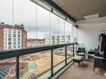 - Olohuoneesta käynti tilavalle huoneiston levyiselle lasitetulle parvekkeelle, parvekkeen suunta etelä/länsi. Parvekkeella on parvekekaihtimet. Sisäpihan puolen huoneisto, josta mukavat vesistönäkymät.