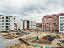 Nätti yhteispiha naapuriyhtiöiden kanssa ja täältä löytyy mm. minigolf-rata asukkaiden käyttöön.