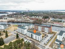 - Hissitalon kolmannen kerroksen sisäpihanpuoleinen huoneisto, josta mukavat vesistönäkymät, samat näkymät myös huoneistonlevyiseltä lasitetulta parvekkeelta.