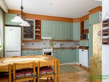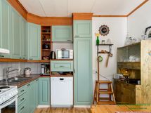 Liesi: sähköliesi. Työtasot: laminaatti. Kylmäsäilytys: jääkaappi/pakastin. Varustus: liesituuletin, astianpesukone, kiinteät valaisimet.