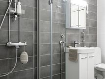 - Varustus: pesukoneliitäntä, wc-istuin, suihku, peili.