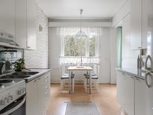 - Liesi: sähköliesi. Työtasot: laminaatti. Kylmäsäilytys: jääkaappi/pakastin. Varustus: liesituuletin.