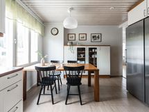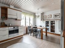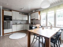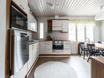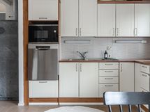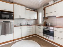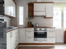 - Jääkaappi, pakastin, uuni, mikroaaltouuni, astianpesukone, kaapistot, induktioliesi, liesikupu/-tuuletin