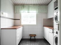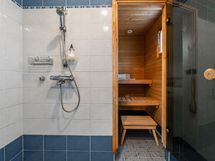 - Kylpyhuone, suihku, peilikaappi, lattialämmitys, kylpyhuonekaapisto, kiinteät valaisimet, erillinen wc, sauna, kodinhoitohuoneessa: pesukoneliitäntä