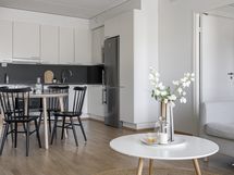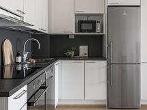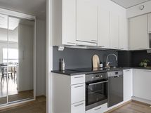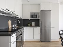Liesi: induktio. Työtasot: laminaatti. Kylmäsäilytys: jääkaappi/pakastin. Varustus: astianpesukone.