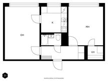 Asunto käsittää kaksi huonetta ja keittiön, jotka tarjoavat erittäin hyvän tilanjakautumisen. Valoisa olohuone avautuu vehreisiin maisemiin, ja suuret ikkunat lisäävät tilan avaruuden tuntua. Keittiö on hyvin varusteltu ja sinne mahtuu myös ruokapöytä arjen ateriointihetkiä varten. Makuuhuone on tilava ja siellä on säilytystilaa vaatekomeroiden muodossa, joka tekee arjestasi sujuvampaa.