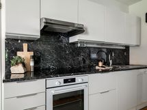 - Jääkaappi, jääkaappi/pakastin, astianpesukone, astianpesukoneliitäntä, erillisuuni- ja taso (keraaminen), kaapistot, liesituuletin hormiin, kiinteät valaisimet