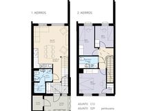 Tähän asuntoon on mahdollisuus tutustua virtuaalisesti jo nyt. Pääset "kävelemään asunnon sisällä" virtuaalilasien avulla ja näet miltä tuleva kotisi tulee näyttämään, kun se valmistuu. Ota yhteyttä ja sovi esittely myyjän kanssa. Tässä neljän huoneen kodissa riittää mukavasti tilaa kahdessa kerroksessa! Kodin alakerrassa on keittiö, olohuone, kylpyhuone sekä sauna ja yläkerrassa on kodin makuuhuoneet sekä kodinhoitohuone/WC.