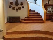 Kellari: Iso avara, viihtyisä lounge tila, missä televisio, upea takka, viinikaapit kirjastonurkkaus +wc + varastot + tekn. tila + paljon oleskelu/harrastetilaa.