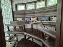 Valoisa sisäuima-allas saunaosastoineen tulee olemaan varmaankin ahkerassa käytössä. Ikkunoista ja puutarhasta voi ihailla purjeveneitä ja kesällä ja talvella nauttia merestä. Meressä hiekkapohja. Talvella on upeaa kävellä, hiihtää, kalastaa tai moottorikelkkailla meren jäällä.