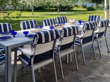 The bright indoor swimming pool with sauna section will probably be in frequent use. From the windows and garden, you can admire sailboats and enjoy the sea in summer and winter. The sea has a sandy bottom. The garden has apple and cherry trees, a plum tree and berry bushes.