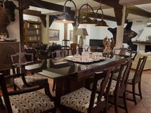 The property has 6 toilets and 4 shower rooms, as well as a sauna section. Indoor swimming pool. Plenty of closets and various storage spaces. Three fireplaces + one outside. Mechanical air conditioning and heat.