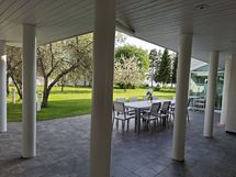 Detached house 320 m2 and a separate building with an apartment and garage and storage rooms totaling 112 m2. The apartment area of the house is 376 m2 + ground floor approx. 120 m2, total 496 m2. Three of the floors are in use, but only two are counted in building squares.
