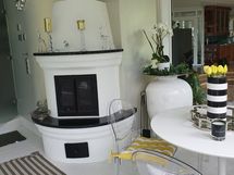 Kolme kaunista takkaa, joista yksi yläkerran olohuoneessa, toinen uima-allasosastossa, sekä kolmas alakerran avarassa oleskelumaailmassa.