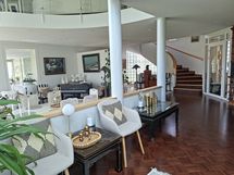 Luxury and impressive home for sale in Oulu. Living area 376 m2 and total area 496 m2, just a minute walk from the sea. Indoor pool. Cozy lounge world in the basement. The main building and the annex make a functional combination. Own beautiful lot.