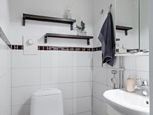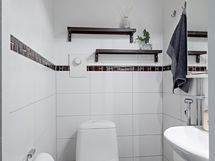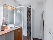 - 2015 uusittu kylpyhuone, missä on suihkukaappi, peili, kiinteät valaisimet, kylpyhuonekaapisto, allaskaapisto, pesukoneliitäntä ja lattialämmitys. Erillinen wc on myös uusittu vuonna 2015 ja siellä on wc-istuin, peilikaappi, allaskaapisto ja lattialämmitys