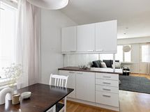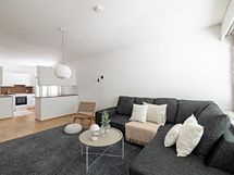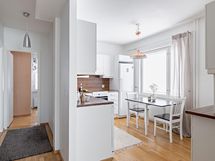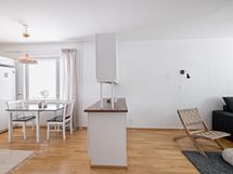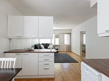 - 2015 uusitussa viihtyisässä keittiössä on astianpesukone, induktioliesi, kiertoilmauuni, kaapistot, liesituuletin aktiivihiilisuodattimella ja jääkaappi.
