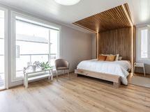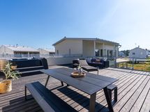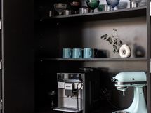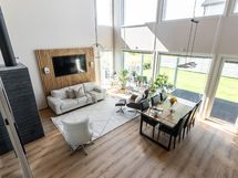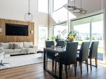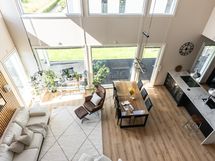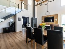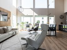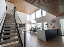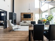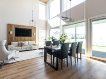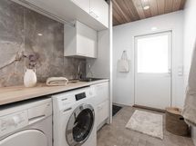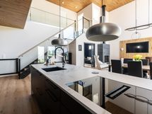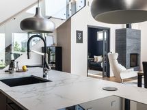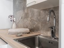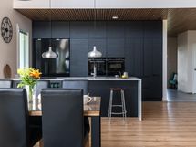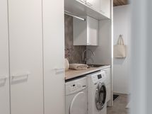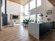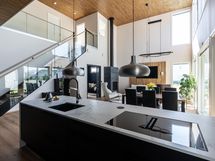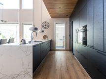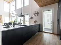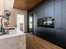- Laadukas AINA-keittiö. Varustelu: Festivon kylmiö, pakastekaappi, Siemens pyrolyysiuuni, mikroaaltouuni/uuni yhdistelmä, lämpölaatikko, Miele astianpesukone , Siemens induktioliesi/liesituuletin aktiivihiilisuodattimella, kaapistot, aamiaiskaappi, apteekkarinkaappi, vitriinikaapissa valaistusvalmius, Dekton-taso vesiputos yksityiskohdalla, Silgranit-kiviallas, pistorasia upotettuna tasoon.