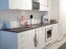 Asunto sijaitsee ensimmäisessä kerroksessa. Keittiössä on yhdistelmäuuni, jossa mikroaalto ja kiertoilma toiminto, 2-levyinen induktioliesitaso, integroitu jääkaappi-pakastin ja astianpesukone. Vaalea laminaattilattia.