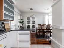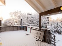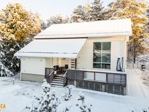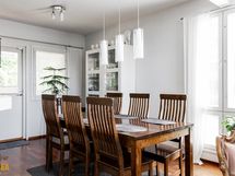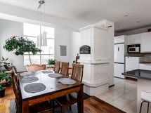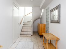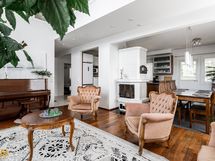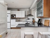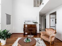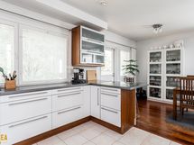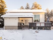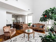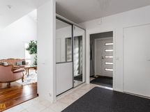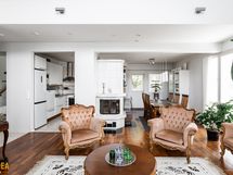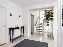 Kolmikerroksinen koti, jonka tilat ovat ruhtinaalliset. 1.kerroksen keskuksena on olohuoneen, ruokailutilan ja keittiön kokonaisuus. Olohuone on näyttävästi korkeaa huonetilaa. Keskeisellä paikalla on takka/leivinuuni. Tyylikkäässä Puustellin keittiössä on paljon taso- ja säilytystilaa, ja laadukkaat kodinkoneet. Erillinen, todella iso kodinhoitohuone sekä arkieteinen. Alakerrassa on myös yksi iso makuuhuone.