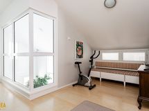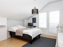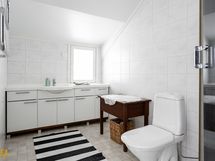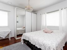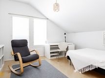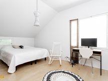 Eteisestä lähtevät portaat johdattavat tilavaan yläkertaan. Kolme reilunkokoista makuuhuonetta mahdollistavat moninaisen käytön. Yhden makuuhuoneen yhteydessä on vaatehuone. Yläkerrassa on myös kylpyhuone/wc.