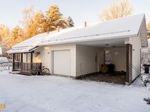 Piharakennuksessa on kaukolämmitteinen autotalli nosto-oviautomatiikalla sekä autokatos. Rakennuksen päässä on myös 26m2 yksiö, jossa on oma keittiö ja kylpyhuone/wc.