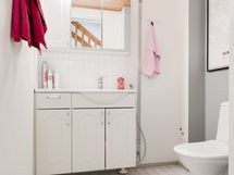 - Pesutilojen varusteet: WC-istuin, pesuallas, suihku, lattialämmitys, suihkuseinä, allaskaappi, peilikaappi ja bidee-suihku. Erillisten WC:n lukumäärä: 1. Erillisen WC:n varusteet: Lattialämmitys, peilikaappi, pesuallas, allaskaappi ja bidee-suihku.