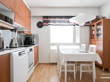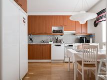 - Keittiön varusteet: Jääkaappi, erillinen pakastin, uuni, liesi, liesituuletin ja astianpesukone. Liesi: Induktioliesi. Työtason materiaali: Laminaatti.